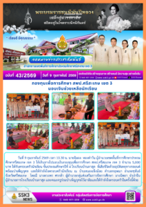 กองทุนเพื่อการศึกษา สพป.ศรีสะเกษ เขต 3 มอบเงินช่วยเหลือนักเรียน
