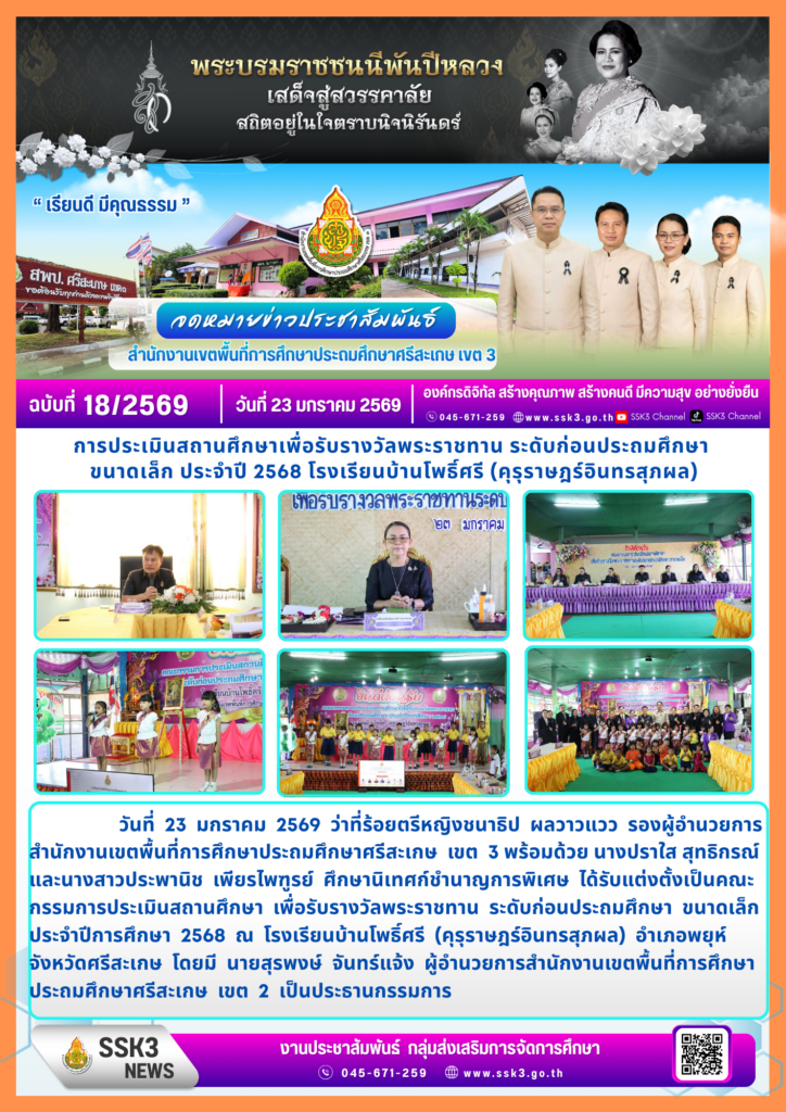 การประเมินสถานศึกษาเพื่อรับรางวัลพระราชทาน ระดับก่อนประถมศึกษา ขนาดเล็ก ประจำปี 2568 โรงเรียนบ้านโพธิ์ศรี (คุรุราษฎร์อินทรสุภผล) มีนาคม 10, 2026 Last updated : มีนาคม 10, 2026 Chanyaphat001 Post Views: 20