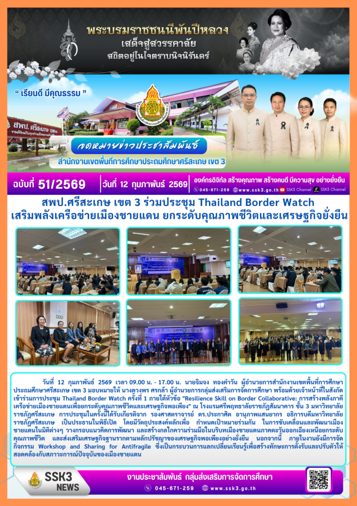 สพป.ศรีสะเกษ เขต 3 ร่วมประชุม Thailand Border Watch เสริมพลังเครือข่ายเมืองชายแดน ยกระดับคุณภาพชีวิตและเศรษฐกิจยั่งยืน มีนาคม 10, 2026 Last updated : มีนาคม 10, 2026 Chanyaphat001 Post Views: 22