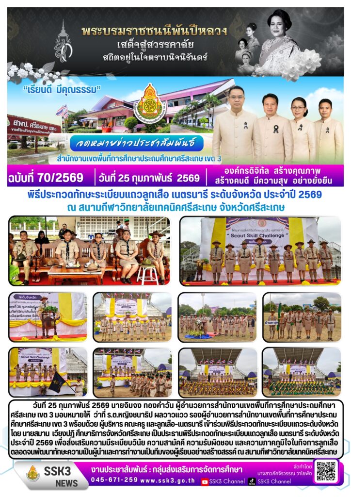 พิธีประกวดทักษะระเบียบแถวลูกเสือ เนตรนารี ระดับจังหวัด ประจำปี 2569 มีนาคม 10, 2026 Last updated : มีนาคม 10, 2026 Chanyaphat001 Post Views: 23