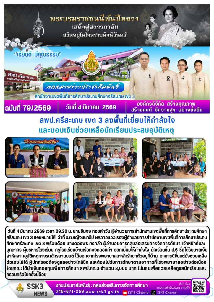 สพป.ศรีสะเกษ เขต 3 ลงพื้นที่เยี่ยมให้กำลังใจ และมอบเงินช่วยเหลือนักเรียนประสบอุบัติเหตุ มีนาคม 10, 2026 Last updated : มีนาคม 10, 2026 Chanyaphat001 Post Views: 30