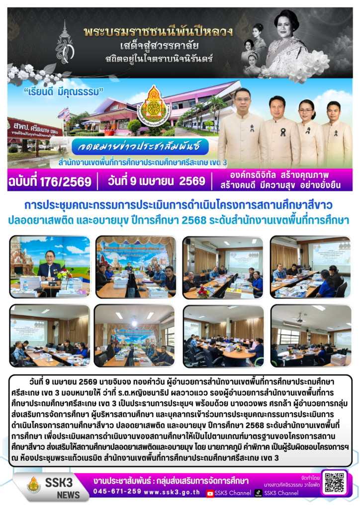 การประชุมคณะกรรมการประเมินการดำเนินโครงการสถานศึกษาสีขาว ปลอดยาเสพติด และอบายมุข ปีการศึกษา 2568 ระดับสำนักงานเขตพื้นที่การศึกษา เมษายน 17, 2026 Last updated : เมษายน 17, 2026 ภัคจิราวรรณ วาโยพัด Post Views: 2