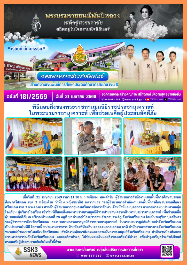 พิธีมอบสิ่งของพระราชทานมูลนิธิราชประชานุเคราะห์ ในพระบรมราชานุเคราะห์ เพื่อช่วยเหลือผู้ประสบอัคคีภัย เมษายน 22, 2026 Last updated : เมษายน 22, 2026 Chanyaphat001 Post Views: 5